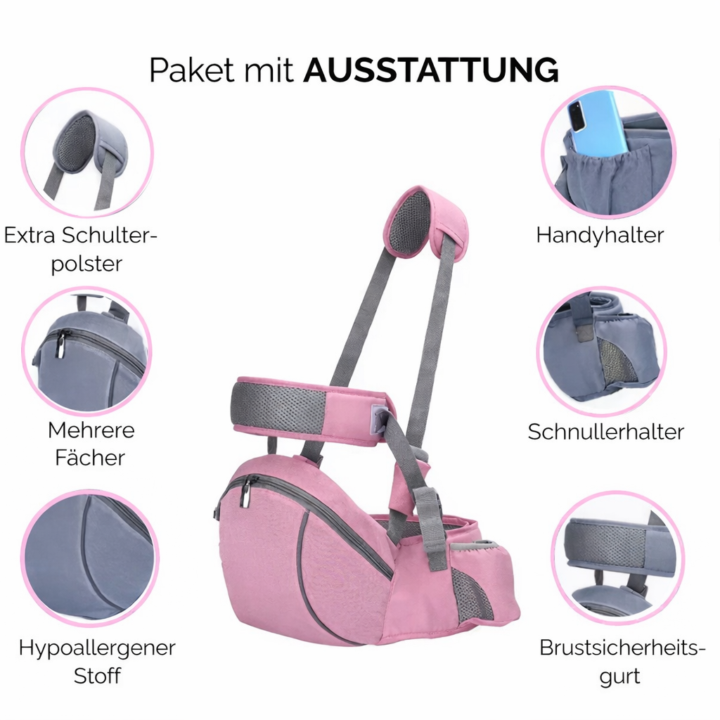 Die durchdachte Babytrage verbindet Tragekomfort mit praktischer Aufbewahrung. Während dein Baby sicher und nah bei dir ist, hast du gleichzeitig Platz für alles Wichtige – ideal für Eltern, die unterwegs flexibel und organisiert bleiben möchten. ✨